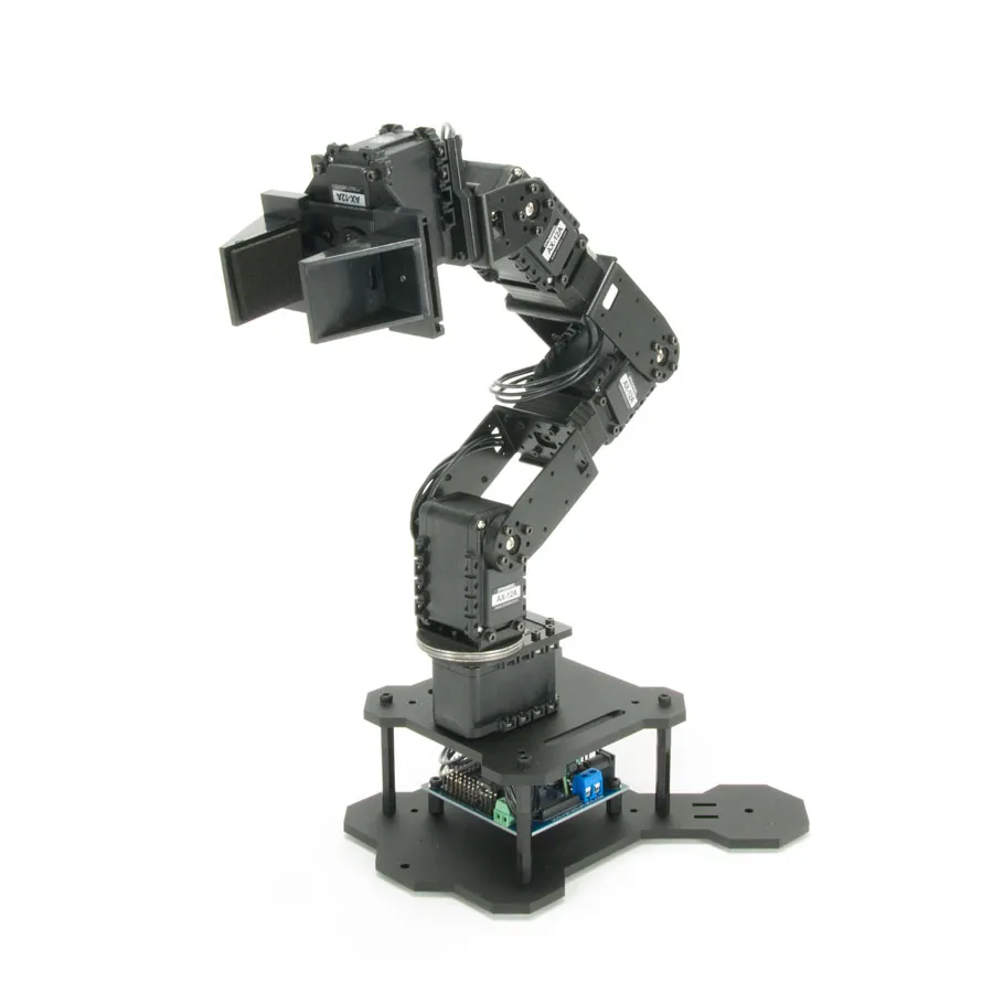 The PhantomX Pincher AX-12 Robot Arm is a 4 degree-of-freedom robotic arm and an easy addition to the TurtleBot ROS robot platform. This hardware kit comes with everything needed to physically assemble and mount the arm as a standalone unit or as an addition to your Turtlebot Robot/mobile platform. source: trossenrobotics.com